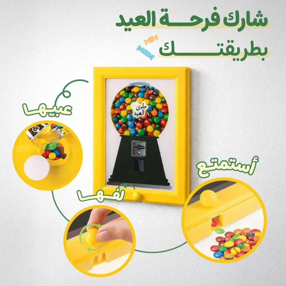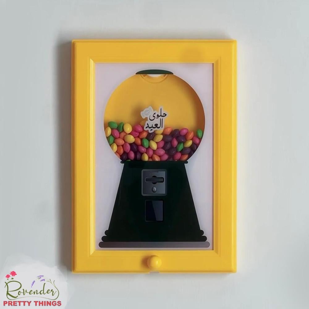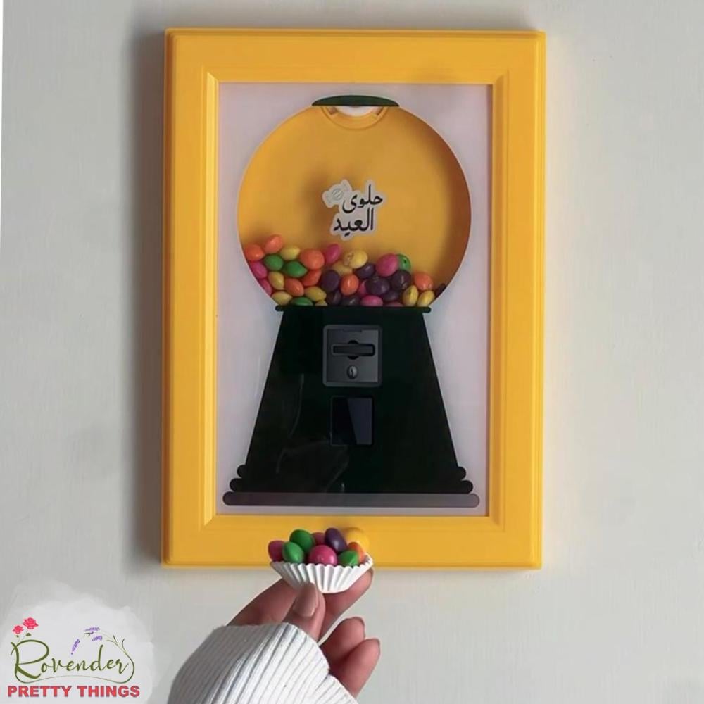 إطار ماكينة الحلويات الكلاسيكية يُعلَّق على الحائط، يوزّع الحلوى بلمسة واحدة